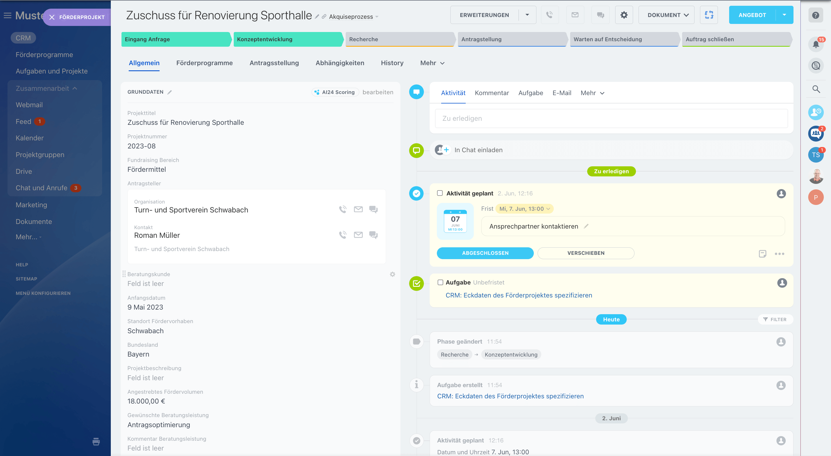 Integrierte Softwarelösung für die Akquise und das Management von Fördermittelprojekten