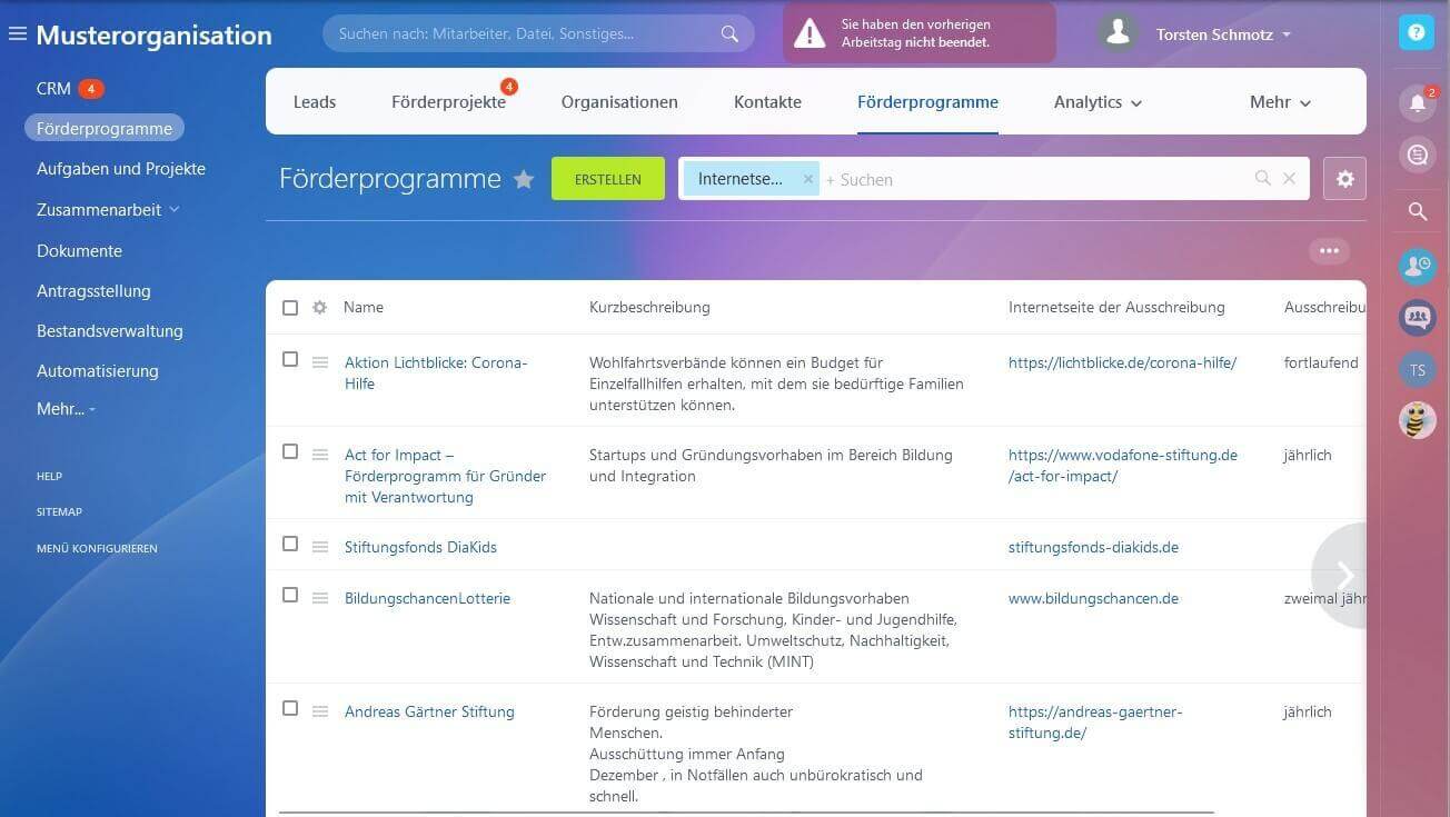 Die Arbeitsoberfläche für professionelles Fördermittelmanagement